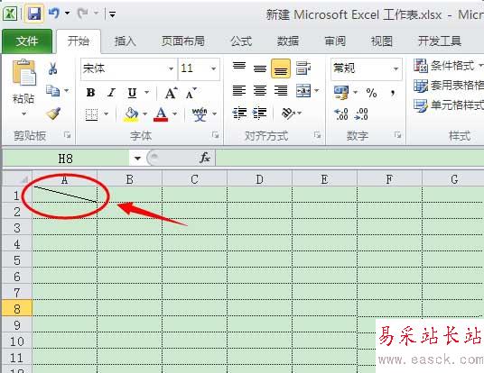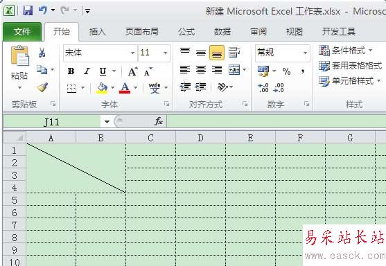 4、選擇完成后大家就可以看到此單元格有個一根斜線。