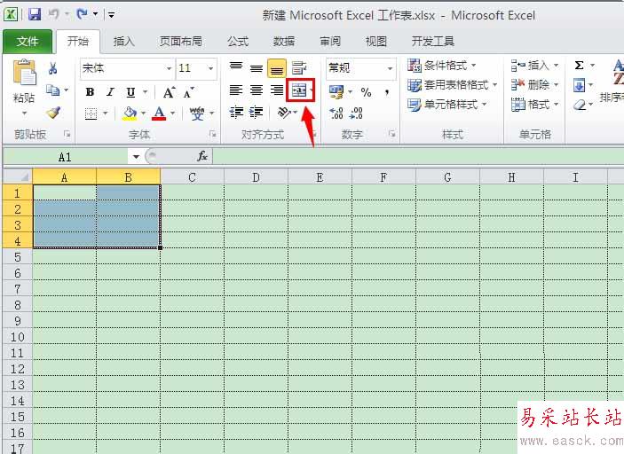 9、大家還可以做一個大大的斜線格,首先我們選擇好所需要單元格,比如我選擇了這8個小的單元格后,點擊上方的合并按鈕(紅框處)