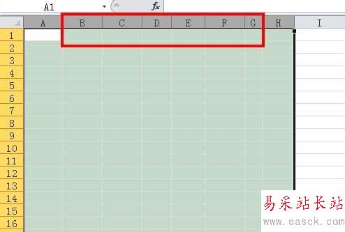 我們直接實例來分析,首先我們拿一個空表,因為每個sheet都有個參照列A開始,我們看到B-H列隱藏了,我們現在要把他們都顯示出來,光選中某列取消隱藏是不行的。