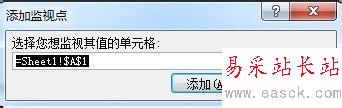 在【添加監視點】對話框選擇要添加監視的單元格,單擊【添加】按鈕