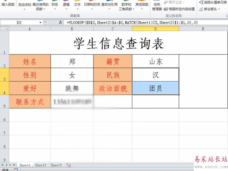 10、執行學生信息查詢表就制作完成了,只要切換學生姓名,其他相應信息就會自動變化了。執行文件-保存命令,將文件保存即可。
