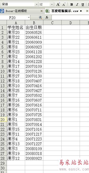 7、最后就能把要排列的內容按升序或降序的順序排列好了。