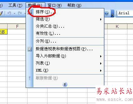 4、然后就會出現一個下拉的菜單,在菜單中找到“排序”,點擊排序。