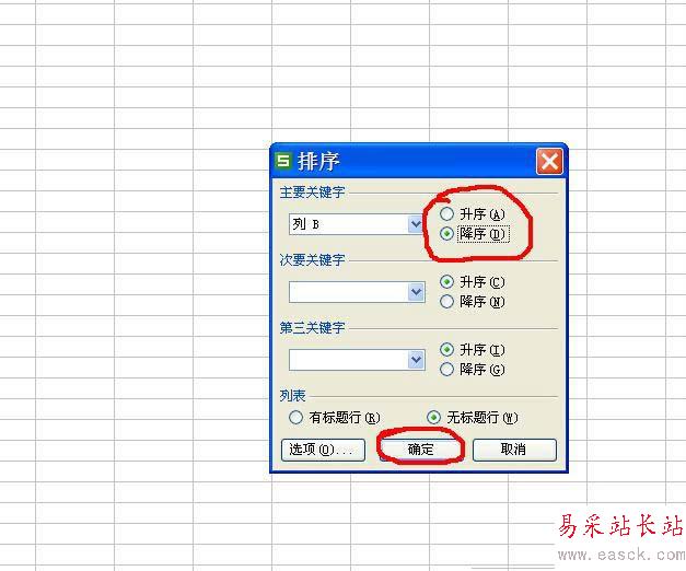6、然后在下個對話框中選擇升序還是降序排列,點擊確定。