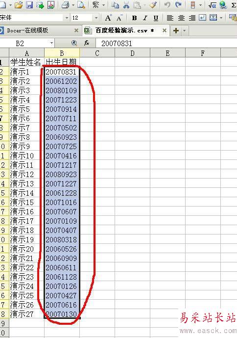 2、下面以排列時間為例子。把鼠標移到要排列的內容上,點擊鼠標左鍵不動,選出要排列的所有內容。