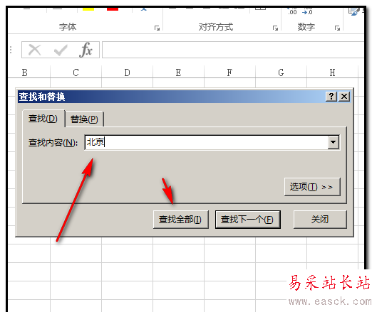 6、然后,在框“查找內(nèi)容”這里輸入“北京”;