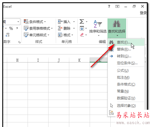 4、彈出的下拉菜單中點(diǎn)第一個(gè)“查找”。