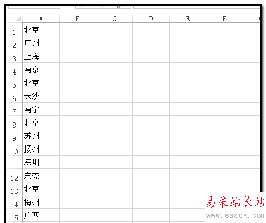 3、現(xiàn)在先把A列中“北京”選定;