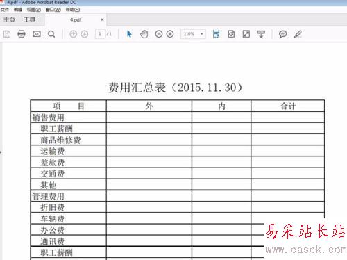 1、如下圖所示,excel中內(nèi)容轉(zhuǎn)成pdf后顯示很小,可以看出,這是紙張過(guò)大,內(nèi)容只占了一小部分,所以要在excel中設(shè)置頁(yè)面大小。