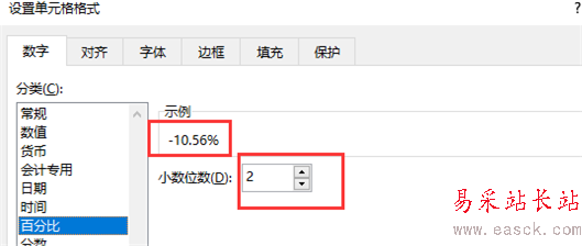 2、選中需要處理的數據,右鍵點擊“設置單元格格式”,在設置單元格格式頁面,選擇“百分比”,再選擇保留小數點的位數。