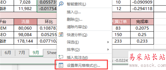 1、打開Excel中需要處理的表格,這邊小編使用的是反映環比的數據,即表示增減的,今日是A,昨日是B,環比為(A-B)/B,這其中就會出現小數點和負數。