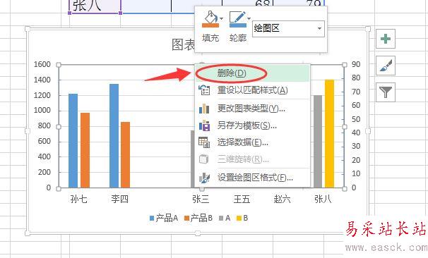 7、最后選中圖表橫線,鼠標右鍵選擇刪除,然后調(diào)整刻度線位置后,數(shù)值差異柱形圖完成。