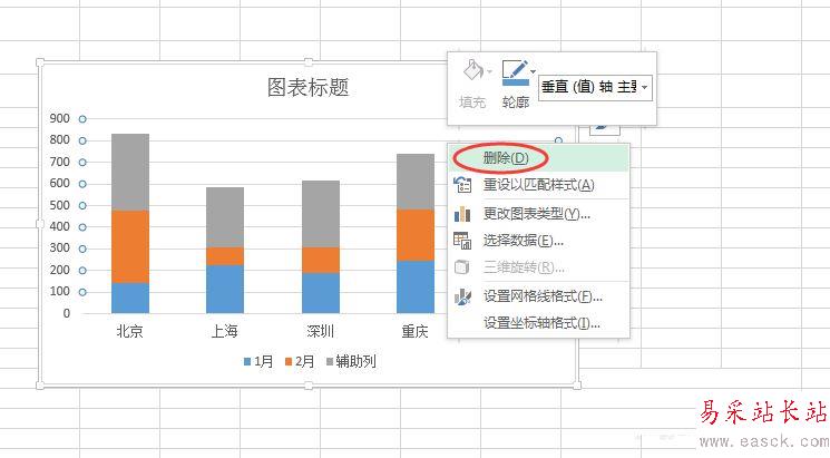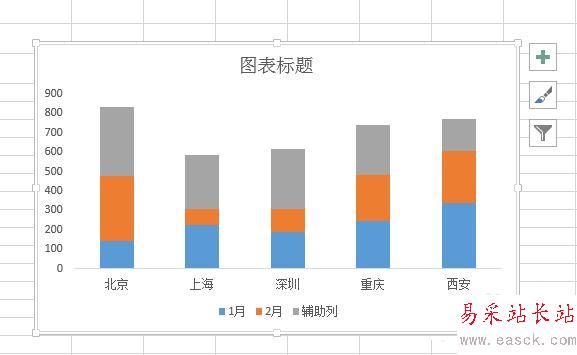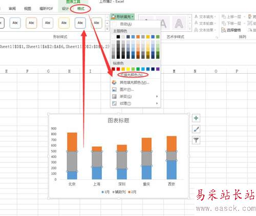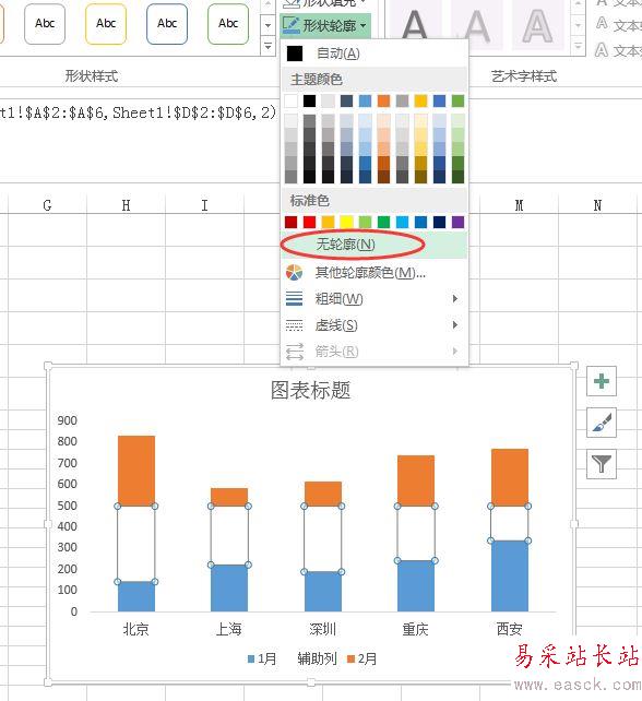 5、選中輔助列圖表系列,設置形狀填充和形狀輪廓都為無填充。