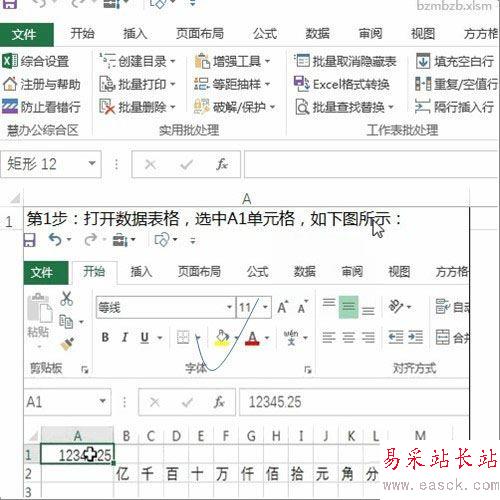 2、第2步:選擇第一個單元格A1,如下圖所示: