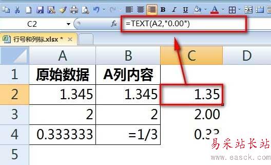 =--TEXT(A2,"0.00")。參與運算時已經是四舍五入后的數字。