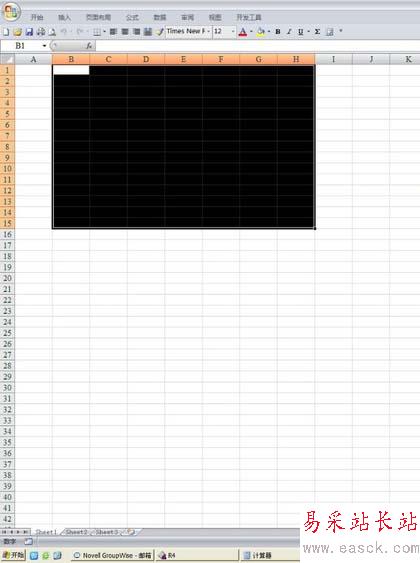 4、點擊“確定”,再退出注冊表編輯器,打開或新建一個Excel文件,選擇多個單元格區域,發現底色變成了純黑色,任務完成!如圖