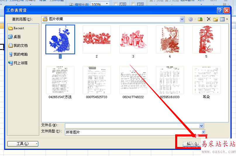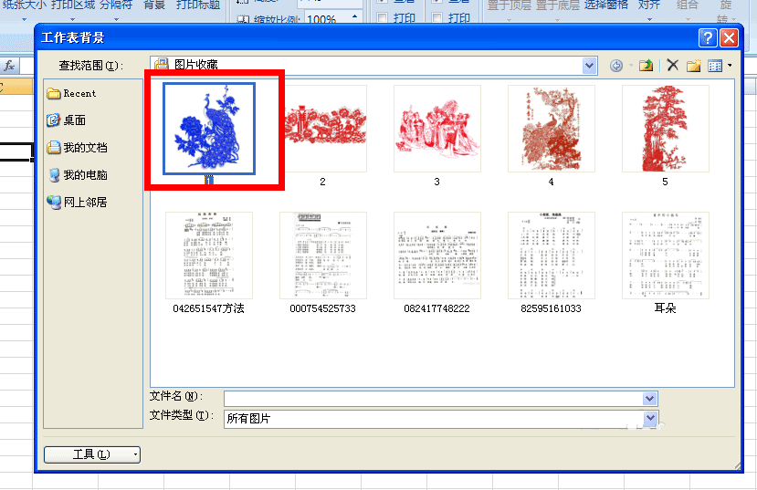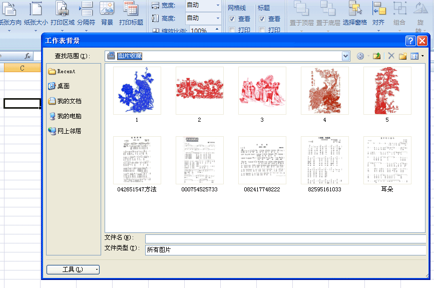 5、單擊之后就會出現一個工作表背景的選項,在這里點擊尋找你要插入背景圖案的所在位置,并且選擇你要插入的背景圖