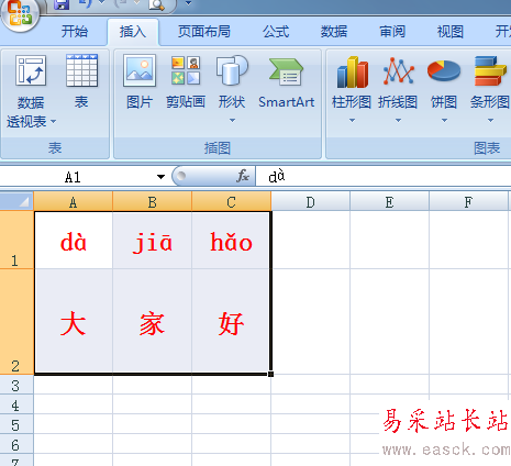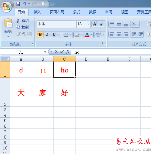 3、在每個(gè)單元格先輸入不需要音調(diào)的拼音,d、ji、ho