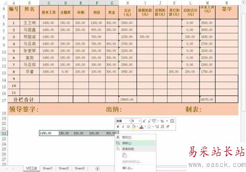 2、例子中B10單元格輸入的數(shù)據(jù)錯(cuò)位,所以我們需要復(fù)選數(shù)據(jù)單元格,然后選擇復(fù)制后使用粘貼數(shù)值將其粘貼到正確的位置。如圖所示: