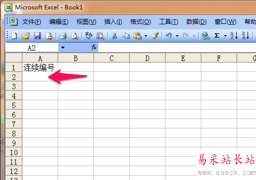 例如,我要在A2單元格建立起始編號“1”,選中A2單元格。