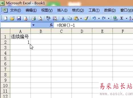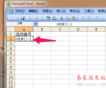 2、輸入“=row()-1” ,Enter回車確認輸入后再選中A2單元格。