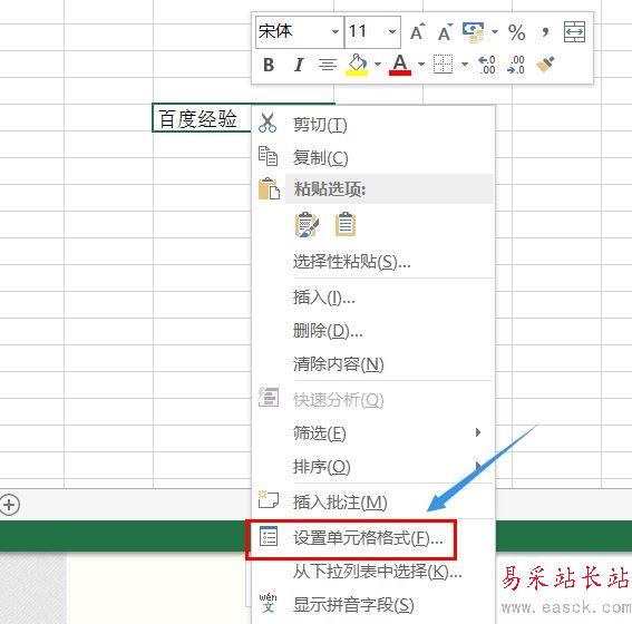 2、此時我們選中該單元格,然后點擊鼠標右鍵"設置單元格格式";