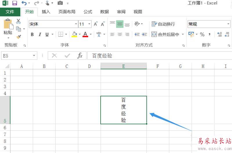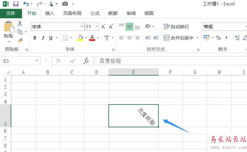 1、首先打開excel辦公軟件,然后在單元格中輸入文字內容,如圖所示正常情況下字體是橫著顯示;