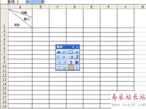 2、找到繪圖工具里直線工具,選擇直線工具,在第一個單元格中拖拽出兩條直線把單元格分成三份。