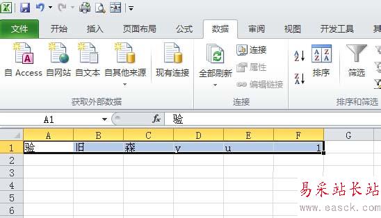 6、這樣子,單元格A1中的字符串“驗,舊,森,y,u,1”已經(jīng)按照半角逗號“,”分列好了。