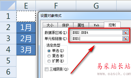 【單元格鏈接】選擇E1。