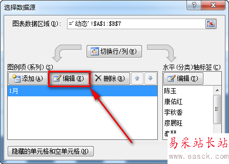 13、選中“1月”這個系列,并點擊【編輯】。