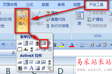 2、點擊功能區的【開發工具】-【插入】-【列表框】。