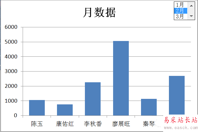 首先看一下原始數據,A列是姓名,B列及以后是各月份的銷售數據。本例顯示1到3月的銷售數據情況,實際情況可能有更多列。