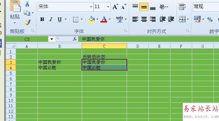2、我們先復制內容到反轉后內同列,以便做對比