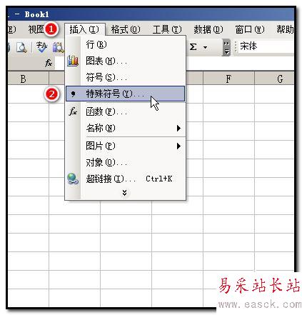 2、然后,在工作表上方的菜單欄中順序點:插入-特殊符號
