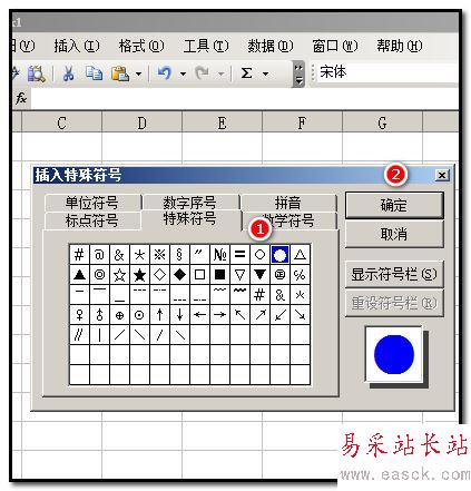 5、點確定后,“ ●” 即顯示在A1單元格中;如下圖所示。