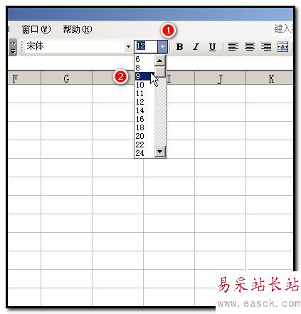 8、然后,在工作表上方的“字號”右側的三角點下,彈出的菜單中點選自己需要的字號,比如“9”;