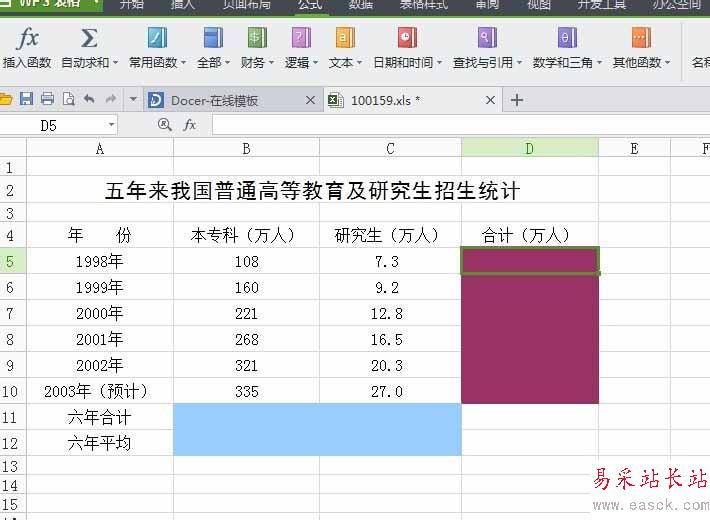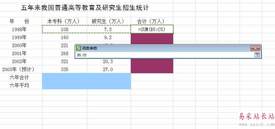 6、再用鼠標從B5拉至C5(以上窗口會自動縮小)