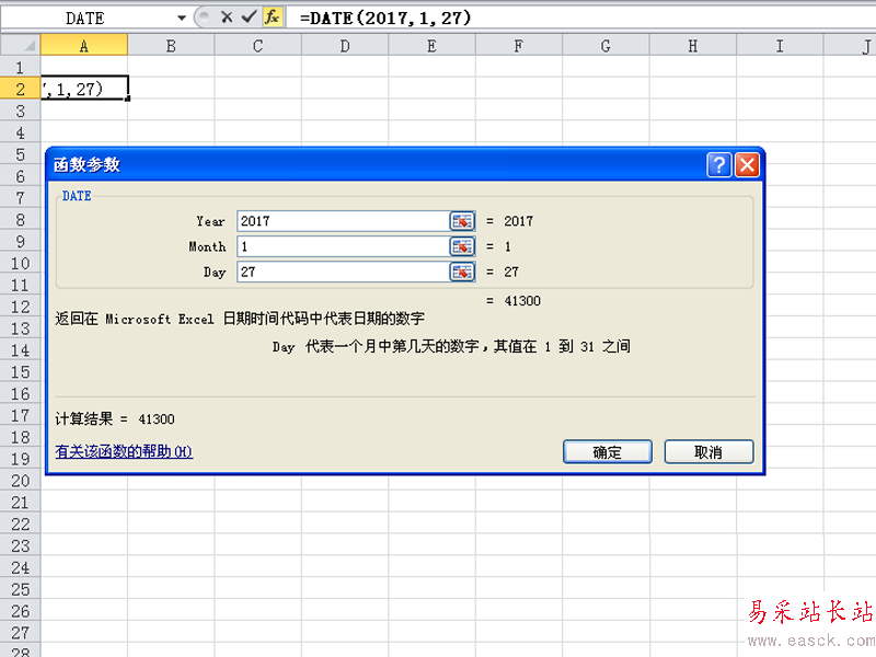 4、在彈出的函數參數對話框中輸入2017年春節的日期,即2017年1月27日,點擊確定按鈕。
