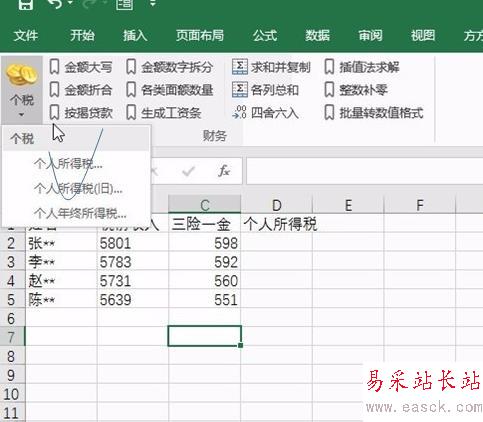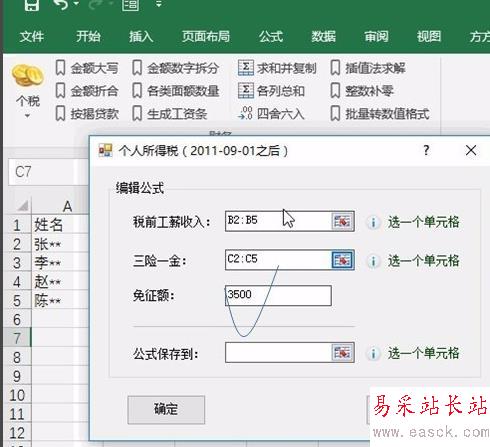 4、彈出對話框拉選稅前收入,三險一金,如下圖所示: