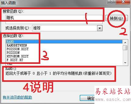 3、當(dāng)不知道函數(shù)類別時, 在搜索函數(shù):輸入一條簡短說明來描述您想做什么,(如 隨機(jī))
