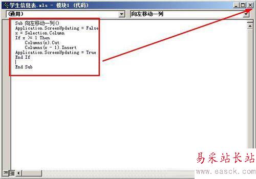 3、打開了宏編輯器,在這個模塊里,我們輸入如下代碼,然后點擊關閉。代碼如下: