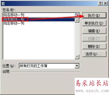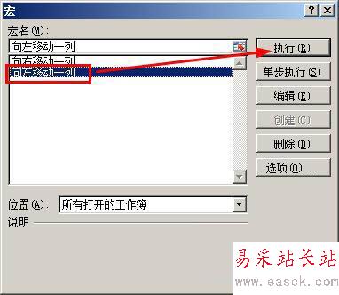 10、點擊【向左移動一列】,選中這個宏,然后點擊【執行】。