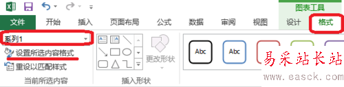 4、點擊圖表工具——格式——系列1——設置所選內容格式。