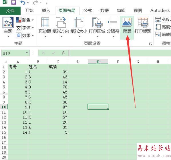 2、在【頁(yè)面布局】選項(xiàng)卡的【頁(yè)面設(shè)置】組中單擊【背景】按鈕
