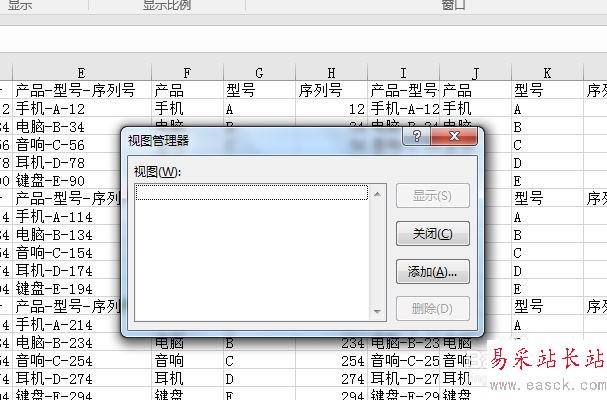 3、這時候,出現,“視圖管理器”對話框。點擊“添加”把當前的視圖列表就存為了一個視圖框。如圖所示。