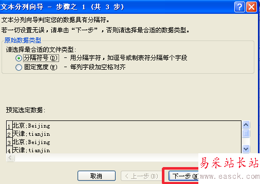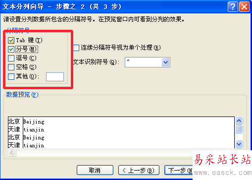 9、這里選擇分割符,我們數據里面都有分號的符合,我們選擇他,如果這里沒有,我們可以選擇其他,比如、-?等。點擊完成即可