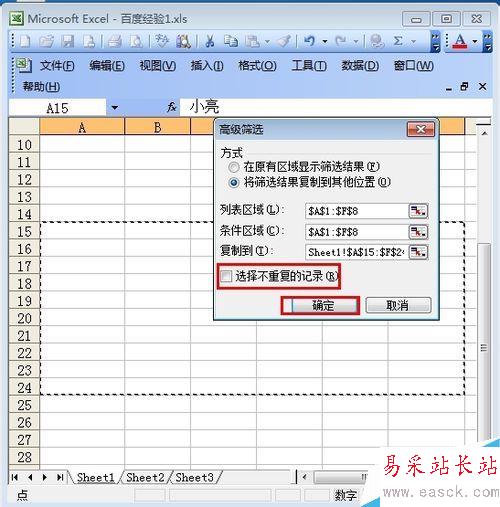 8、打鉤“選擇不重復的記錄” 然后點擊“確定” 如圖