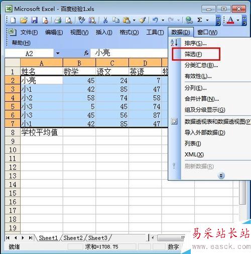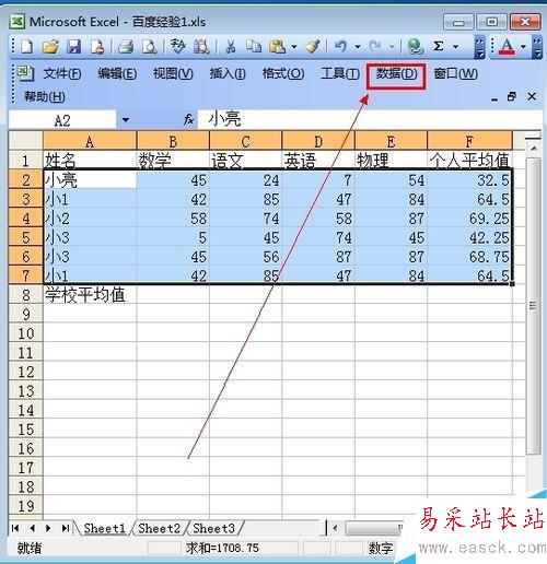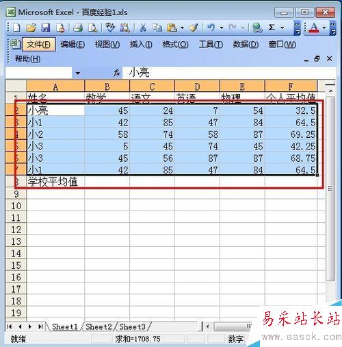 2、鼠標單擊左鍵拖動選擇所有數據 如圖