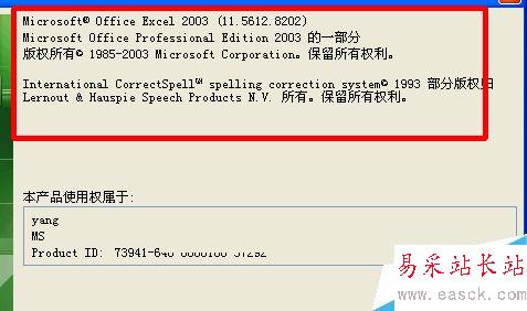 3、版本號出來,我們這是excel2003,下邊還有id的